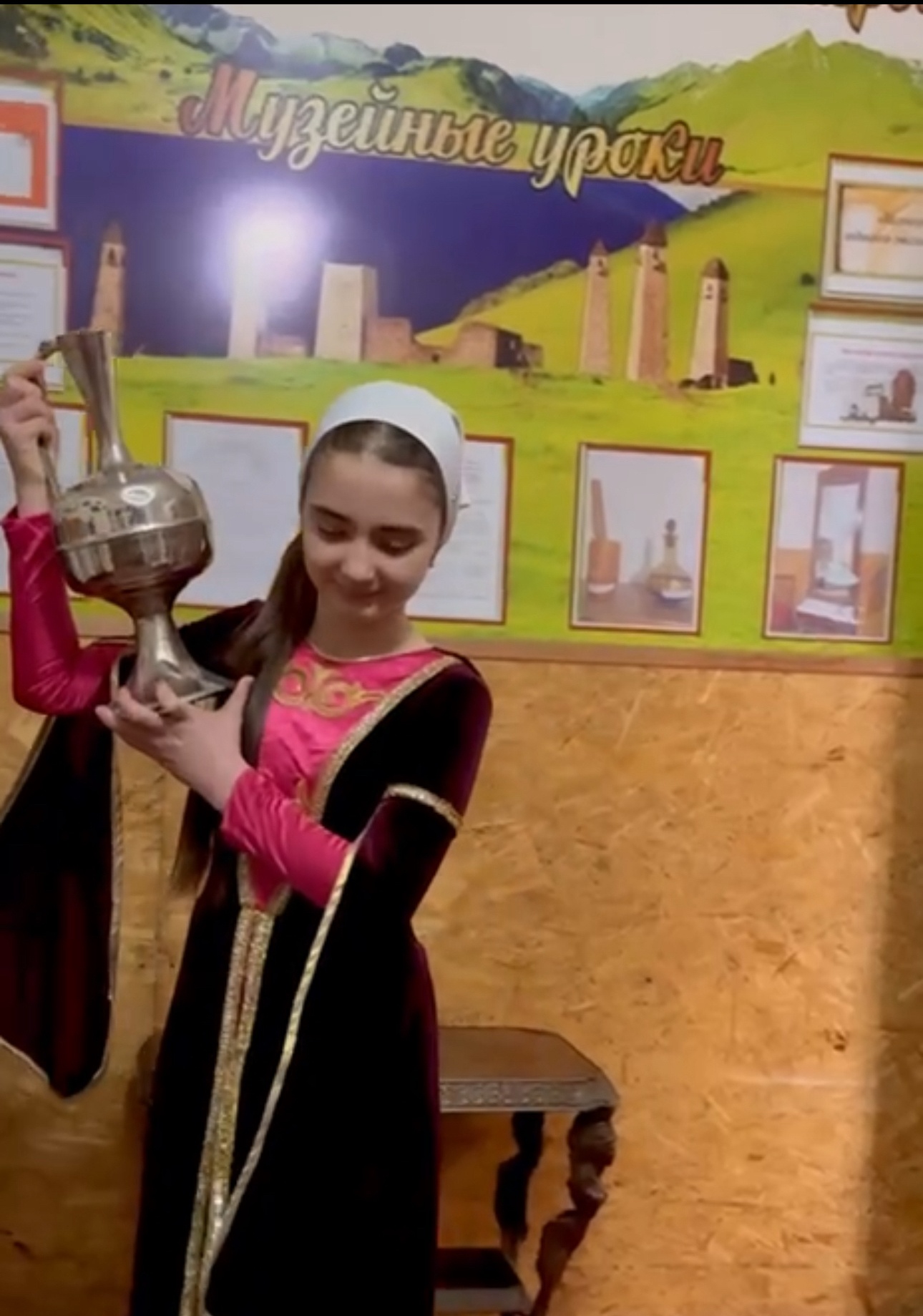 Музейный урок✅ История – это фундамент, на котором базируется самосознание любого этноса. 🌹Посуда у чеченцев почти до конца 19 века была деревянная, гончарная и медная. В ее изготовлении народные мастера достигли большого совершенства. На данном уроке расскажет детям о том, как жили раньше чеченцы, какими предметами быта они пользовались, из каких пород дерева изготавливалась посуда и другие предметы быта, также о предметах домашнего обихода таких как: подносы, чашки, ложки, маслобойки. О традиционной медной посуде: тазы, кружки, чаны, казаны — которая перешла из девятнадцатого века в нынешний быт.